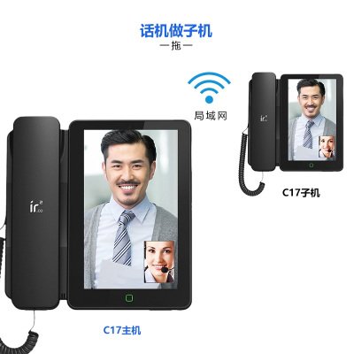 铱方C17黑色一拖一子母机安卓多媒体智能可视电话机网络视频录音电话机座机办公家用黑名单电话 IP电话