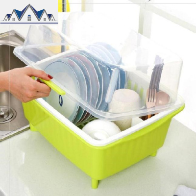 塑料透明带盖碗柜带沥水架碗架家用翻盖放碗箱带排水管碗筷收纳盒 三维工匠收纳层架