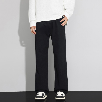YANXUvibe高街垂感休闲西裤ins潮牌纯色宽松直筒显瘦拖地微喇叭裤子男