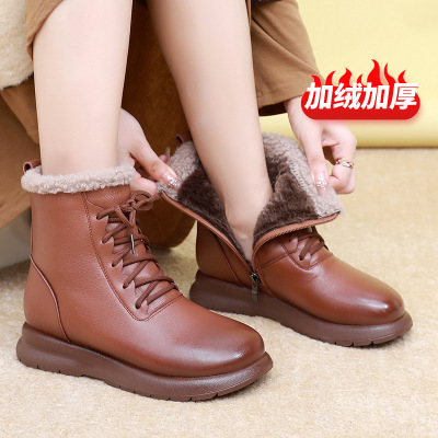 头层牛皮保暖短靴女厚底靴冬季新款女靴加绒软底毛毛靴小棉靴