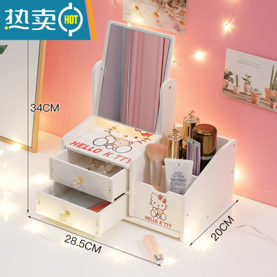 敬平镜子化妆镜ins风桌面带收纳网红美妆少女心宿舍学生高清小梳妆镜便携式用镜 大号单盒方镜[] 白色