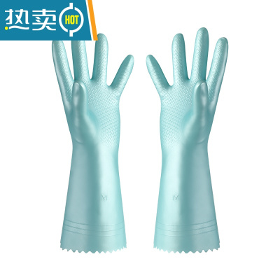 敬平洗碗手套女干活橡胶洗衣服刷碗家务厨房耐用型清洁胶家用胶皮洗衣 混色2双装[雾霾蓝+薄荷绿] L