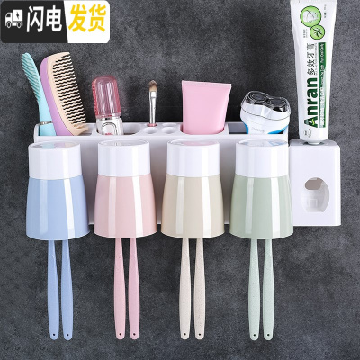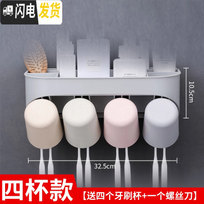 三维工匠免打孔牙刷置物架卫生间收纳挤牙膏器漱口杯套装壁挂式牙膏牙刷架 四杯款[送4个牙刷杯+1个螺丝刀]