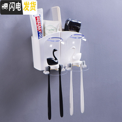 三维工匠壁挂天鹅牙刷置物架卫生间免打孔透明洗漱杯架四口之家牙刷架套装 2人:天鹅双杯/黑白