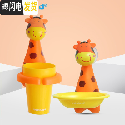 三维工匠卡通儿童刷牙杯牙刷漱口杯宝宝牙具座牙刷架多功能杯架子 长颈鹿套装