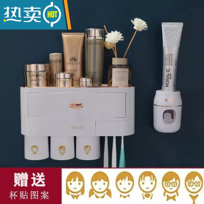 三维工匠牙刷置物架免打孔吸壁式全自动挤牙膏器挂墙式卫生间漱口杯架套装 情侣套装(2杯)牙刷架/牙具座