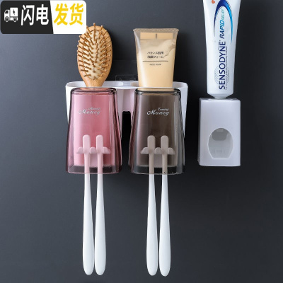 三维工匠牙刷置物架免打孔吸壁式全自动挤牙膏器挂墙式卫生间漱口杯架套装 三口之家套装(3杯)牙刷架/牙具座