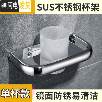 三维工匠卫生间牙刷杯免打孔304不锈钢单双杯架浴室置物架壁挂酒店漱口杯 304不锈钢单杯免钉牙刷架/牙具座