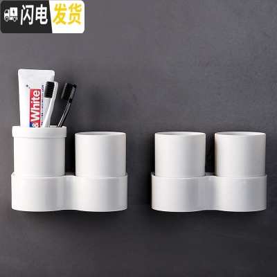 三维工匠漱口杯套装牙刷杯架放口杯的架子牙具盒浴室壁挂式置物架四口之家 白色2个装(自带4个杯子)牙刷架/牙具座