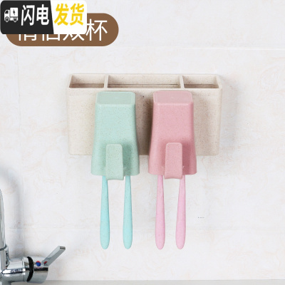 三维工匠创意免打孔五口之家牙膏牙刷置物架卫生间四口之家吸壁式牙具套装 小麦两口(送牙刷2支)牙刷架/牙具座
