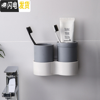 三维工匠漱口杯套装牙刷杯架放口杯的架子牙具盒浴室壁挂式置物架四口之家 灰色1个装(自带两个杯子可变身旅行洗牙刷架/牙具座