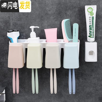 三维工匠牙刷置物架免打孔漱口刷牙杯挂墙式卫生间吸壁式壁挂牙具牙缸套装 小麦四品之家套装(4杯)牙刷架/牙具座