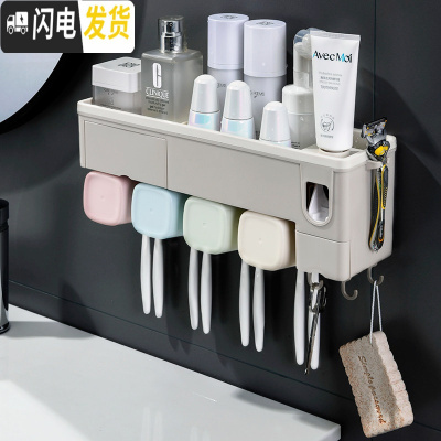 三维工匠悬挂式插牙刷放牙膏筒 多功能简单漱口杯墙上牙缸纯色卫生间挂架 795C四口牙刷架+挤牙膏器