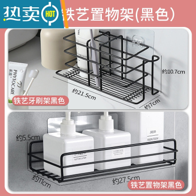 敬平壁挂式牙刷置物架免打孔卫生间刷牙杯收纳架漱口杯挂墙牙具牙杯架 常规黑色+黑色置物架浴室置物架