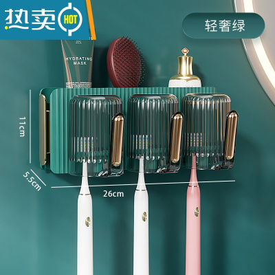 敬平电动牙刷置物架免打孔漱口杯刷牙杯挂墙卫生间壁挂式架子家庭套装 [轻奢绿]三口之家/牙刷架浴室置物架