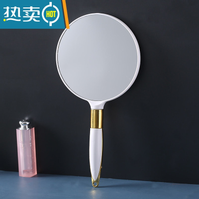 敬平欧式复古手柄化妆镜手拿手持美容院美容镜子便携随身化妆镜小镜子便携式用镜 圆形白色