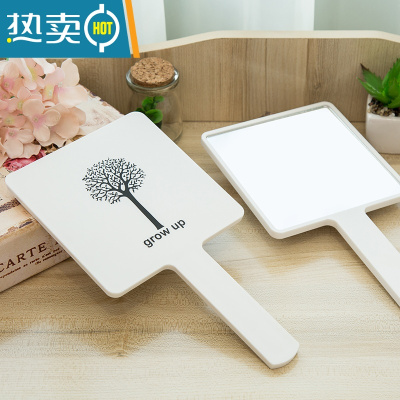 敬平高清手柄化妆镜手拿美容院化妆镜子便携随身复古花边单面小镜便携式用镜 方形纳米白色