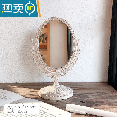 敬平少女心ins风欧式复古化妆镜桌面台式大号镜子家用旋转公主梳妆镜便携式用镜 椭圆化妆镜 小号