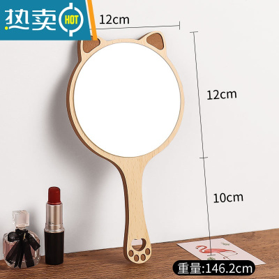 敬平美容院专用化妆镜女手柄高清纹绣手持手拿便携随身木制小镜子 木质猫咪化妆镜便携式用镜