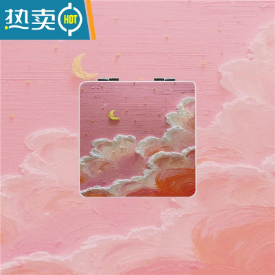 敬平海盐月亮云彩油画便携化妆镜随身镜学生折叠双面镜迷你女生小镜子 粉色月亮云彩-化妆镜便携式用镜