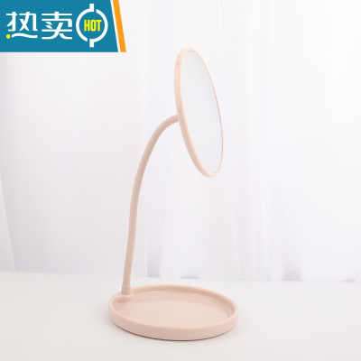 敬平宿舍化妆镜台式桌面北欧风蘑菇头化妆镜网红镜子便携梳妆镜补妆镜 粉色便携式用镜