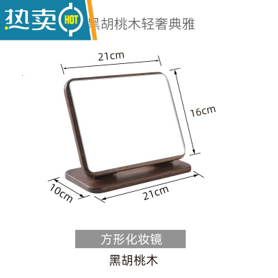 敬平实木化妆镜家用复古台式桌面折叠高清梳妆镜黑胡桃木便携随身镜子便携式用镜 方形化妆镜