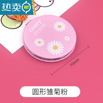敬平折叠双面化妆镜可爱迷你小镜子化妆镜随身便携梳妆镜女学生便携式用镜 圆形雏菊粉 折叠双面镜