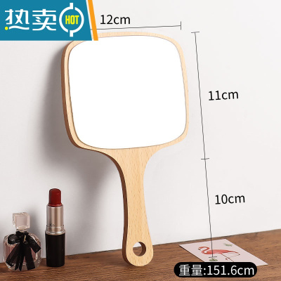 敬平美容院专用化妆镜女手柄高清纹绣手持手拿便携随身木制小镜子 木质方形化妆镜便携式用镜