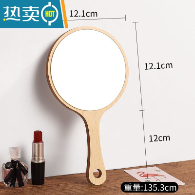 敬平美容院专用化妆镜女手柄高清纹绣手持手拿便携随身木制小镜子 木质圆形化妆镜便携式用镜