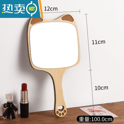 敬平美容院专用化妆镜女手柄高清纹绣手持手拿便携随身木制小镜子 木质浣熊化妆镜便携式用镜