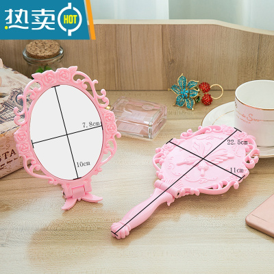 敬平高清手柄化妆镜手拿美容院化妆镜子便携随身复古花边单面小镜便携式用镜 小号粉色蝴蝶可折叠