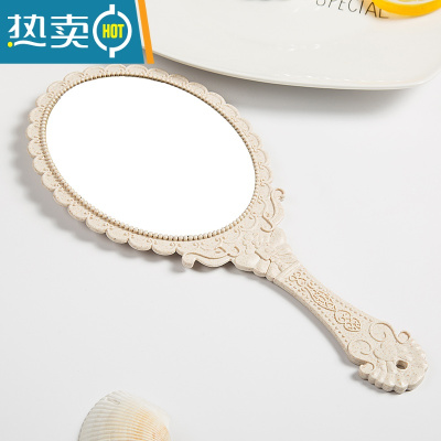 敬平高清手柄化妆镜手拿美容院化妆镜子便携随身复古花边单面小镜便携式用镜 椭圆雕花款纳米白