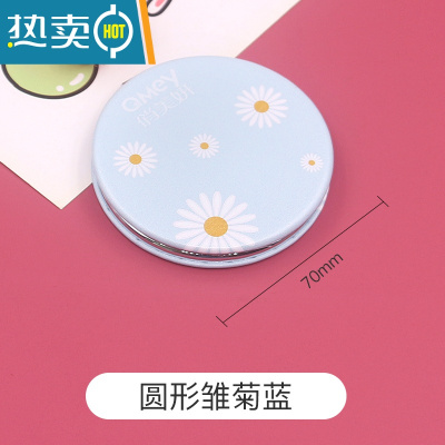 敬平折叠双面化妆镜可爱迷你小镜子化妆镜随身便携梳妆镜女学生便携式用镜 圆形雏菊蓝 折叠双面镜