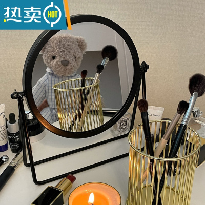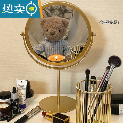 敬平ins风少女心宿舍台式桌面化妆镜复古网红学生旋转公主镜梳妆镜子便携式用镜 高款金色-化妆镜