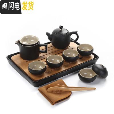 三维工匠黑陶功夫茶具套装家用简约现代客厅整套复古陶瓷日式干泡茶盘 14头提梁壶套组+盘