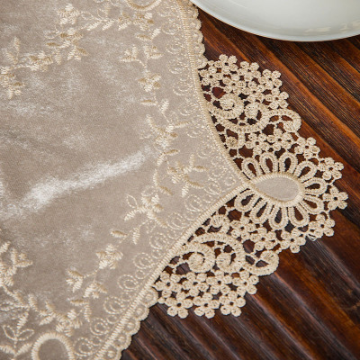 美帮汇茶几桌旗欧式桌巾长条桌布蕾丝餐桌旗轻奢电视柜桌旗复古 香槟色 40*90cm桌旗茶几装饰垫