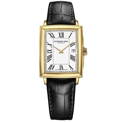 Raymond weil雷蒙威女士石英瑞士腕表矩形金镀不锈钢黑皮带防水米