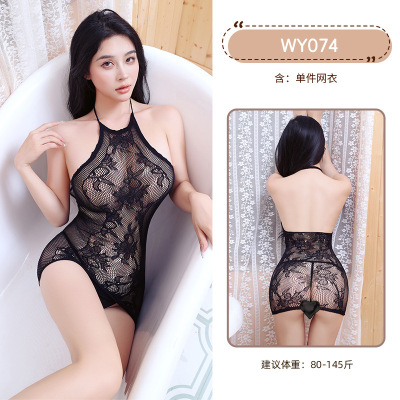 九里晴川情趣内衣女挂脖镂空包臀渔网诱惑情趣丝袜网衣分销 九里晴川WY078[渔网网衣裙] 均码