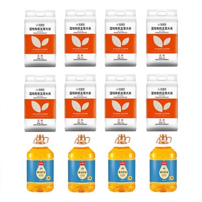 裕道府 米面油组合套餐二40kg+20L(湿地有机五常大米5kg*8袋+葵花籽油5L*4桶)