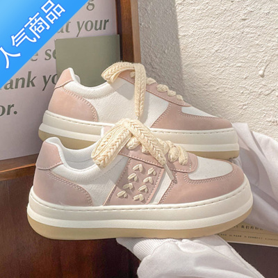 SUNTEK厚底运动鞋女款2022年新款秋冬百搭增高粉色小白鞋休闲板鞋子