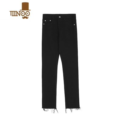 YANXUBLAEXIT美式高街直筒显瘦毛边微喇叭长裤男款vibe马蹄黑色牛仔裤