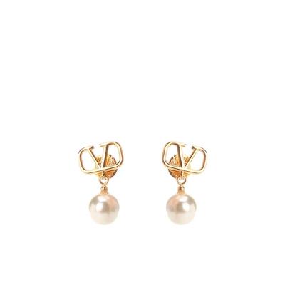 华伦天奴(Valentino)金属耳饰女穿孔徽标字母珠饰吊坠蝴蝶扣时尚
