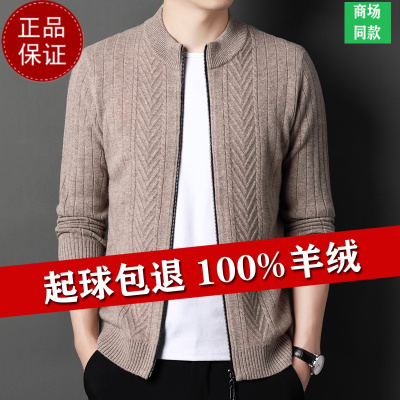 加厚开衫羊绒衫春秋新款纯羊毛衫男针织开衫拉链立领毛衣男外套羊毛衫打底衫100纯羊毛衫套头拉链商务羊绒衫男士毛衣