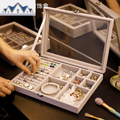三维工匠绒布长方首饰戒指耳环盒大容量饰品收纳盒生日女韩国可爱学生