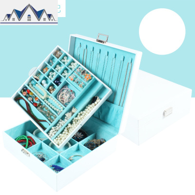 皮革双层首饰盒公主欧式韩国手饰品木质耳钉耳环首饰收纳饰品盒 三维工匠收纳盒