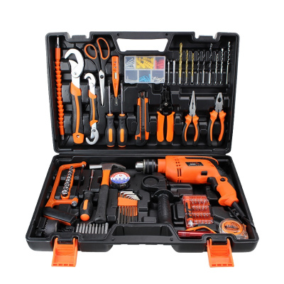 深蕨SNJUE 五金工具箱套装 冲击电钻工具组 家用水电工装维修工具盒 电钻多功能扳手加强版