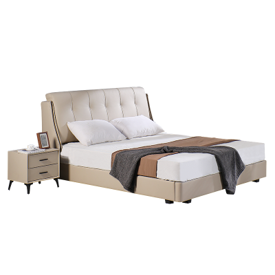 梦轻扬头层牛皮意式轻奢主卧1.5米1.8软包靠背皮艺实木大床双人床