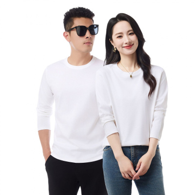 纯棉液氨三防长袖T恤男秋季男女同款圆领套头纯色净版打底衫