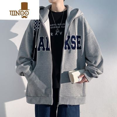 YANXU拉链外套男美式复古冬季加绒青少年帅气休闲宽松连帽卫衣