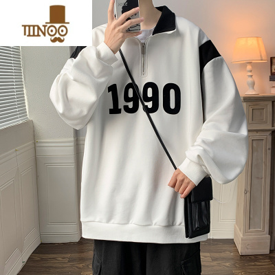 YANXU半拉链卫衣男士新款潮流宽松美式印花外套款男生港风撞色上衣